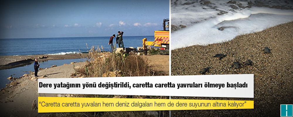Dolum tesislerinden depolama tesislerine giden yaklaşık 8 kilometrelik boru hattının dere kısmından geçen bölümünün değiştirildiğini savunan Kayhan, “Bunun sonucunda da dere yatağının denize dökülen bölümünün yönü değişiyor. Bu yönün değişmesi sonucu caretta caretta yuvaları hem deniz dalgaları hem de dere suyunun altına kalıyor. Su altında kalan yuvalardaki yumurtalar çürüyor, çok sayıda yavru da ölüyor” diye konuştu.