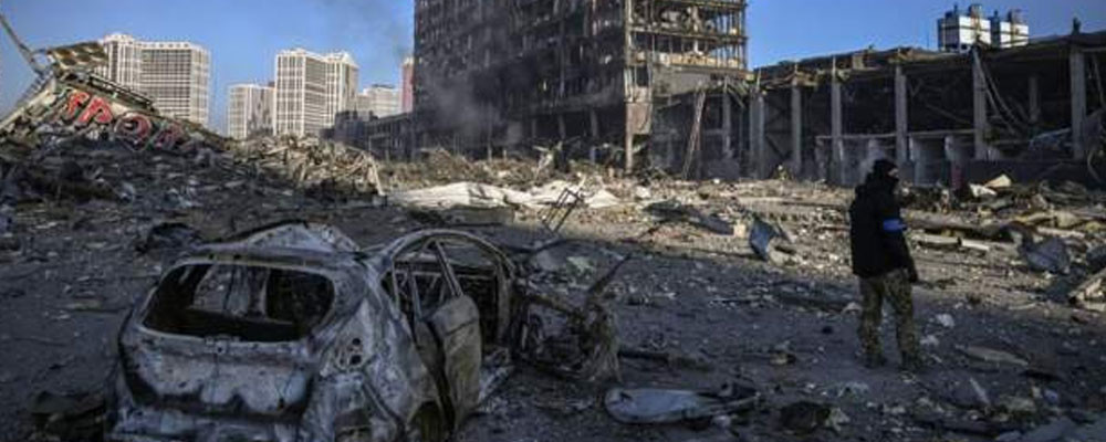 Bombardıman alanından gelen görüntüler, alışveriş merkezinin büyük zarar gördüğünü gösteriyor.