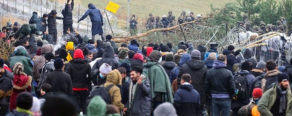 Bugün Polonya’ya doğru harekete geçen binlerce mülteciye -haber ajanslarının geçtiği görüntülerden de rahatça izlenebileceği gibi- silahlı Belarus ordusu askerleri eşlik etti.