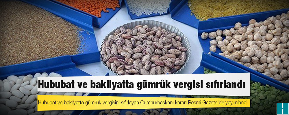 Hububat ve bakliyatta gümrük vergisini sıfırlayan Cumhurbaşkanı kararı Resmi Gazete’de yayımlandı.