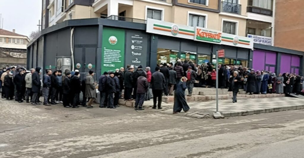 Elazığ’da vatandaşlar ucuz et için Tarım Kredi Kooperatifi marketinin önünde uzun kuyruklar oluşturdu