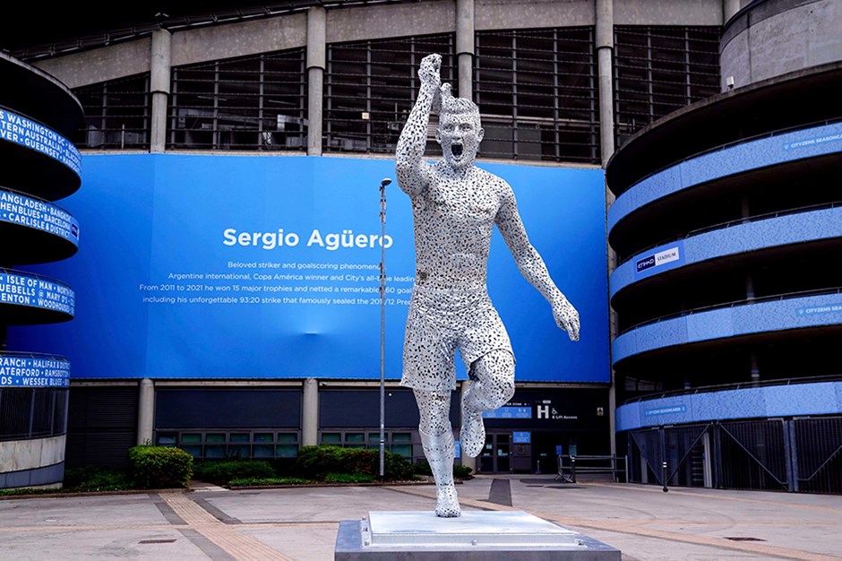 Manchester ekibi, 2012 yılında Queens Park Rangers’a karşı 93:20’de şampiyonluğu getiren golü kaydeden Agüero’nun heykelini, bu efsanevi golün 10’uncu yıldönümünde Etihad Stadyumu’nun doğu tarafında açtı.